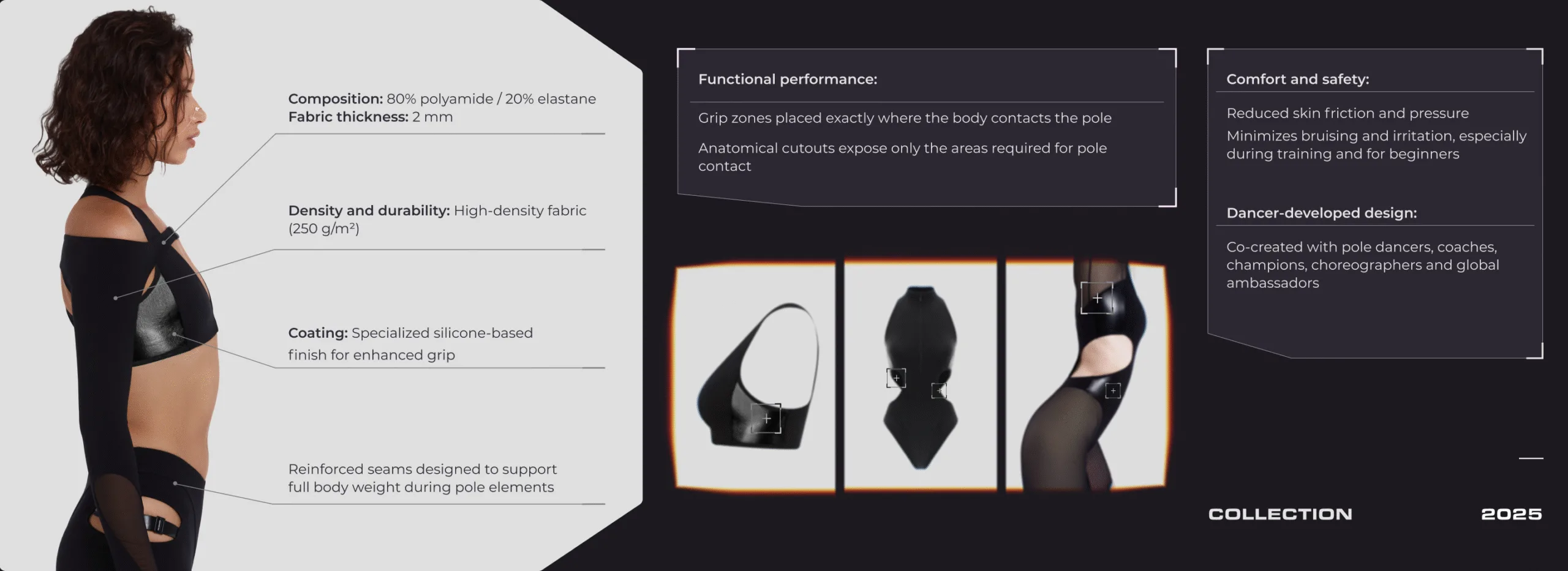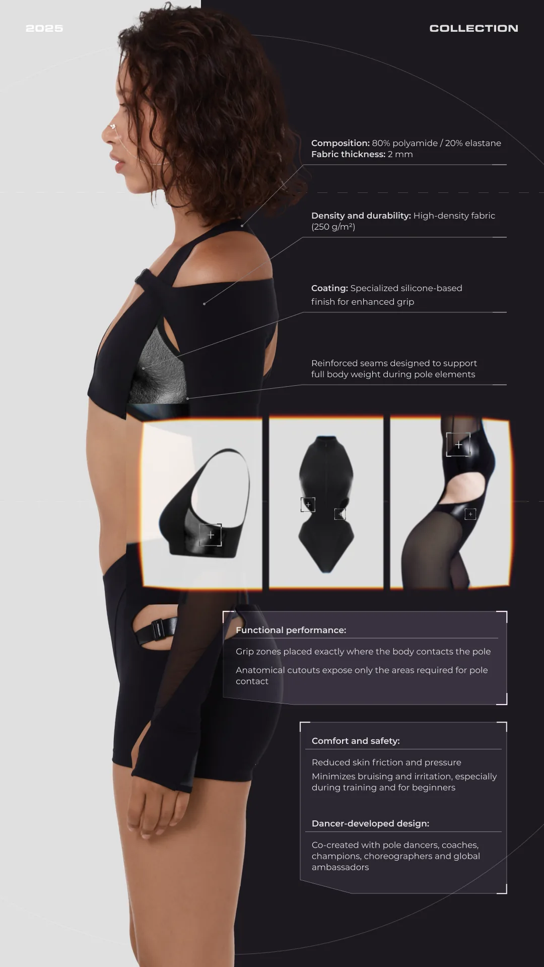 For the first time ever, polewear was engineered from the inside out. Built on motion. Built with grip. Built with purpose.